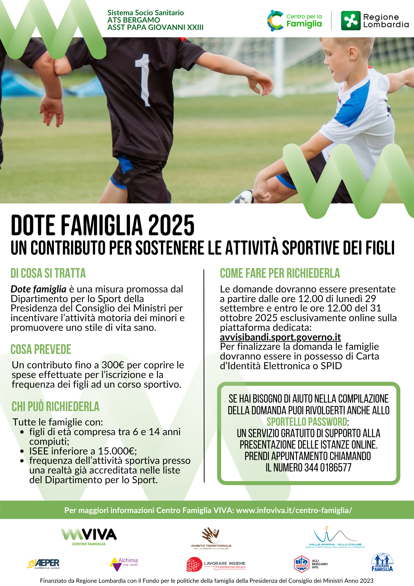 L'iniziativa "Dote Famiglia" è promossa dal Dipartimento per lo Sport del Consiglio dei Ministri.